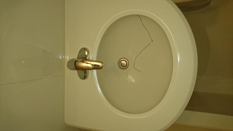 陶器洗面ボール ワレ補修(改修吹付塗装)